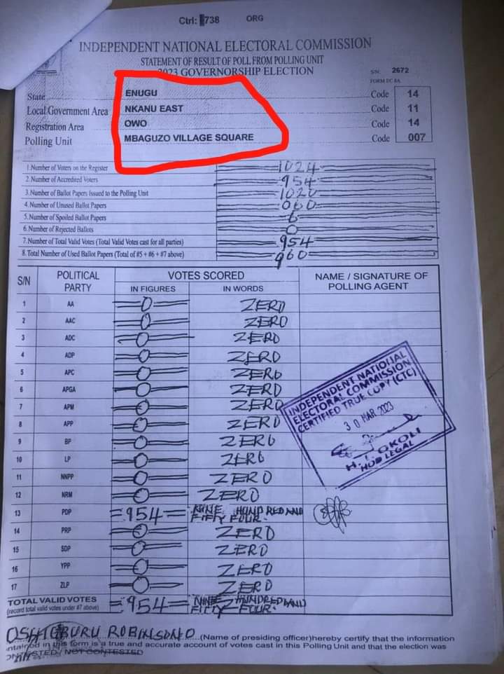 As Governor Peter Mbah of the Peoples Democratic Party opens his defense against Barr. Chijioke Edeoga and Labour Party’s petition challenging his declaration as Governor by INEC, he has admitted to the incidence of over voting and computational error in Nkanu East as the deposition he made on oath varies with INEC certified true copies of documents already tendered before the Tribunal.