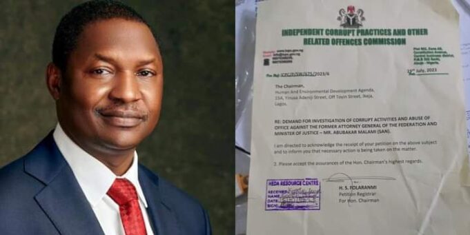 “This petition is submitted to bring to your attention and demand investigation into allegations of corruption and abuse of office against the former Attorney General of the Federation and Minister of Justice, Mr Abubakar Malami (SAN). We are perturbed by lack of investigation or report of any by the anti-corruption agencies of several reports of corrupt practices and abuse of office levelled against the person and revered position occupied by Mr Malami, being the number one law officer of the country.
