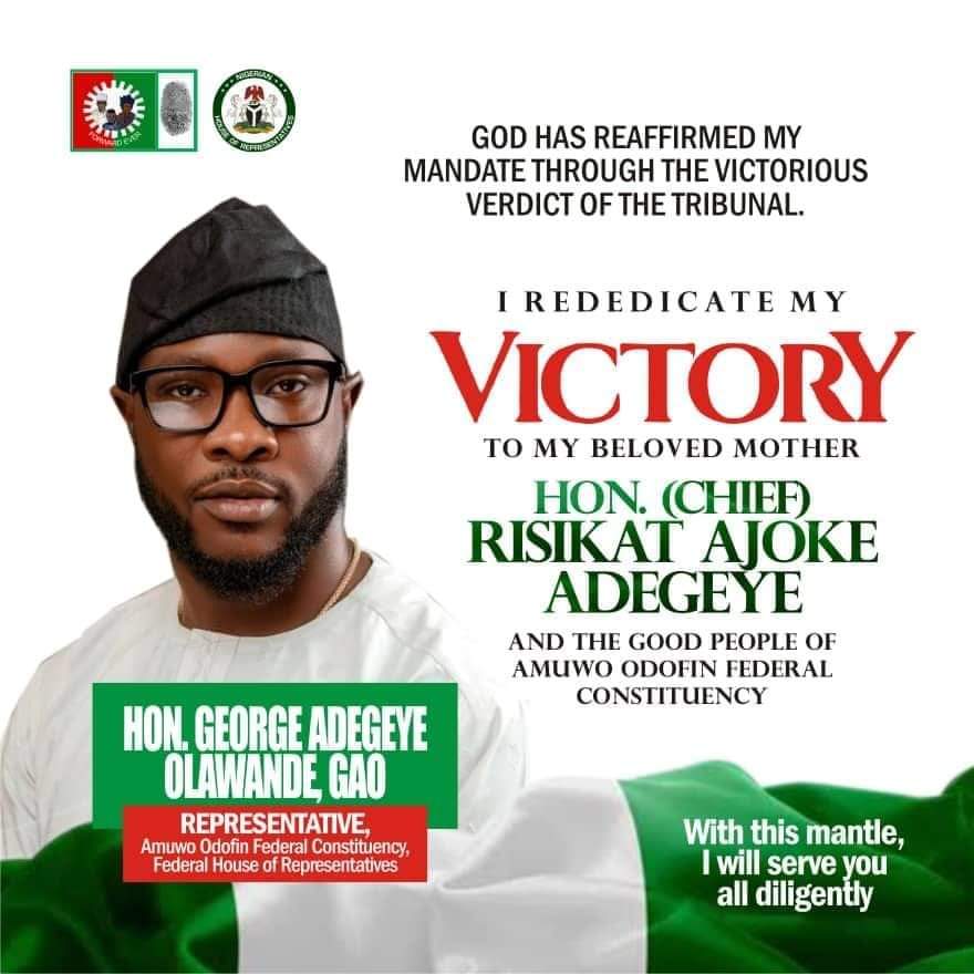 The tribunal in its final judgment returned Hon George Folarin Adegeye Olawande as the authentic Representative for Amuwo Odofin Federal Constituency.