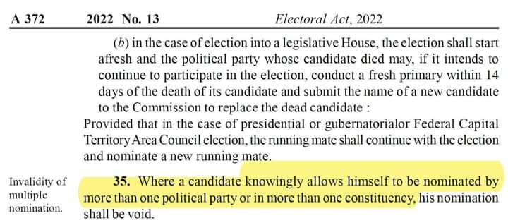 He said the matters of qualification and disqualification are guided by the provisions of sections 131 and 137(1)(a)(j) of the Nigerian Constitution.