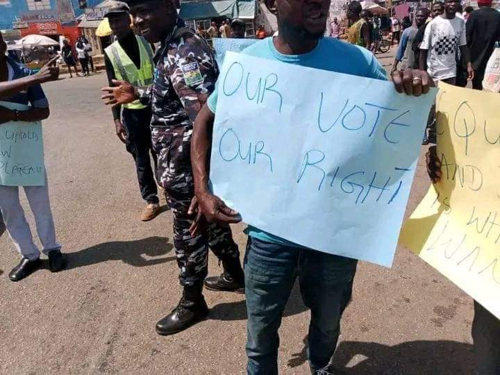 The points where the protests were held include Old Airport Junction, Maraban Jos and some other major junctions in Jos.