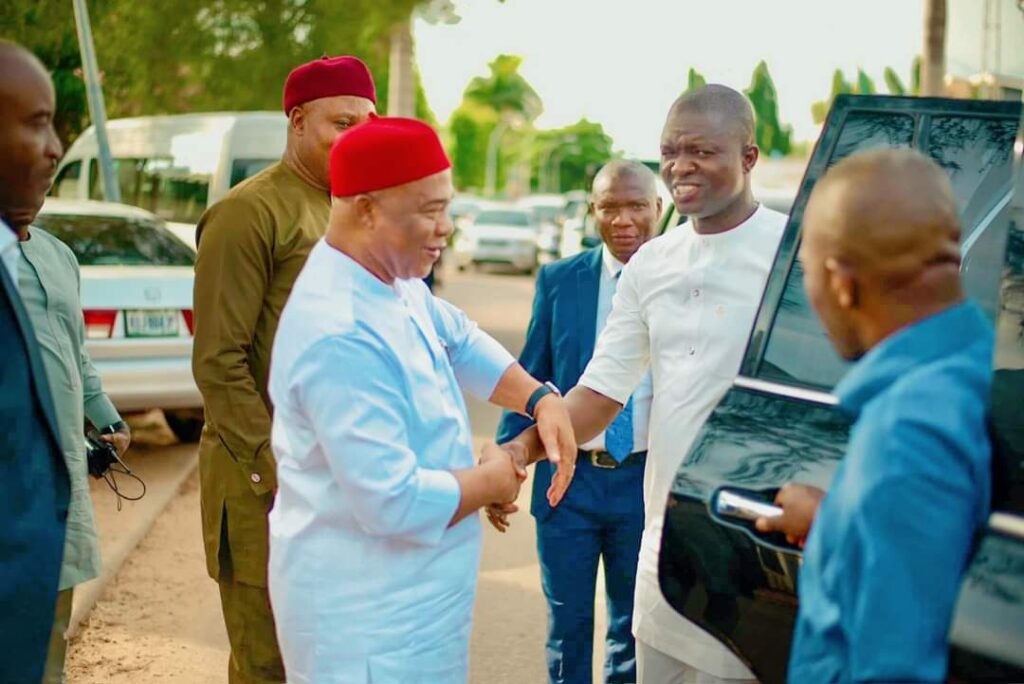 Imo state Governor, Uzodinma in a warm handshake with Governor Nwifuru