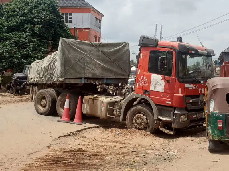 On Wednesday, motorists and commuters on the Umuahia-Ikot Ekpene federal highway faced severe disruptions after a female truck driver transporting cement from Calabar blocked the road to protest harassment by local touts.
