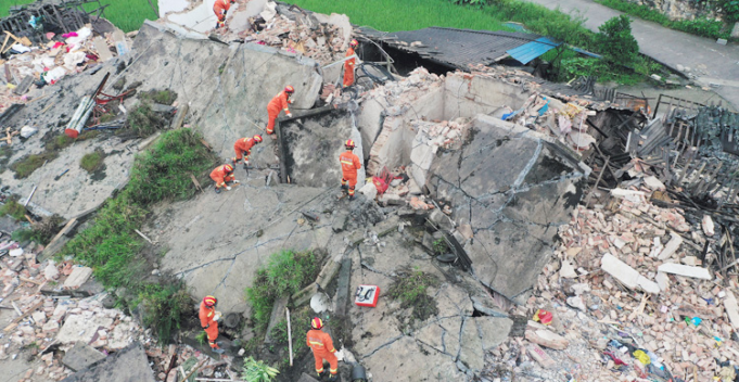 According to footage from China’s state broadcaster CCTV, entire houses were demolished, with walls torn apart.