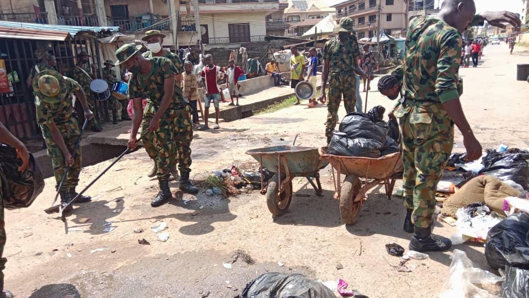 The Nigerian Army on Saturday carried out a large-scale environmental sanitation exercise across various communities in Onitsha South Local Government Area of Anambra State.
