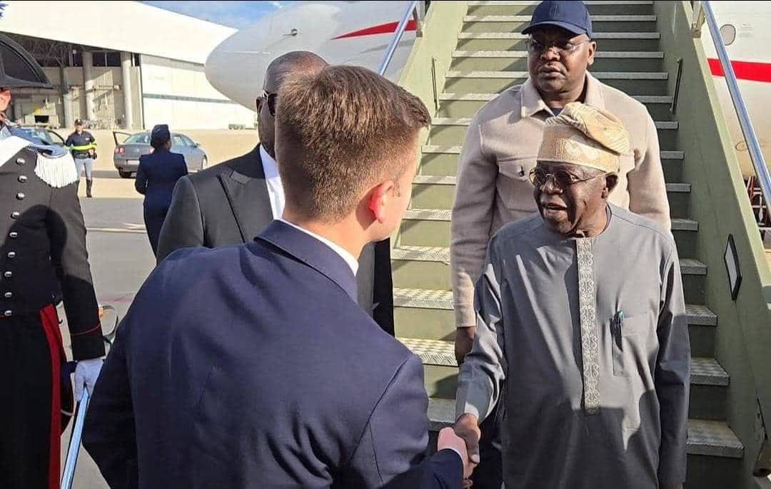 Upon arrival at the Mario De Bernardo Military Airport at 6:00 pm local time, President Tinubu was received by Nigeria’s Minister of State for Foreign Affairs, Ambassador Bianca Odumegwu-Ojukwu, along with representatives from the Vatican and the Nigerian Embassy.