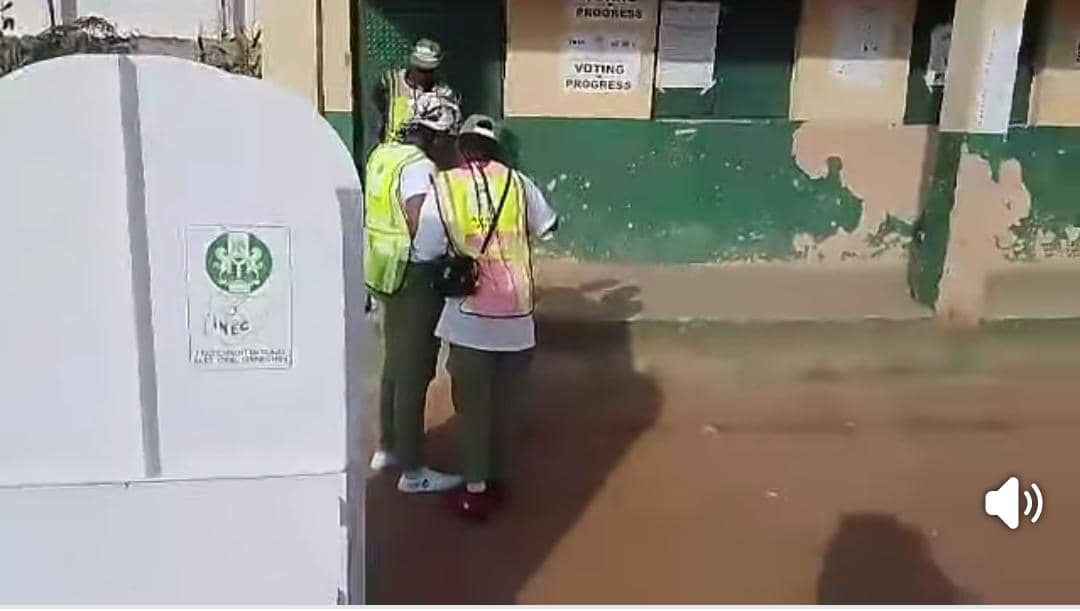 Although INEC’s ad-hoc staff, mostly comprised of National Youth Service Corps (NYSC) members were present at the venue alongside ballot boxes and voting cubicles, key sensitive materials such as ballot papers and result sheets were conspicuously missing.