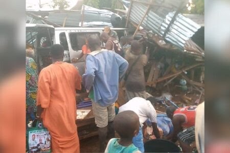 The eighteen-seater bus, reportedly loaded in Enugu and heading to Onitsha in Anambra State, veered off the road before hitting several structures and individuals.