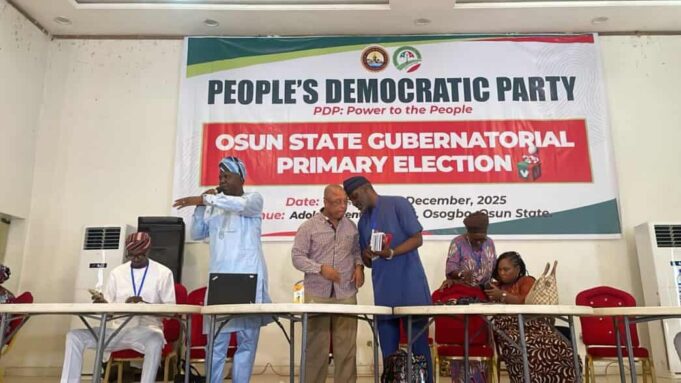 Despite his earlier announcement of resignation from the PDP, Governor Ademola Adeleke’s name still appeared on the ballot, creating some confusion among delegates and observers.