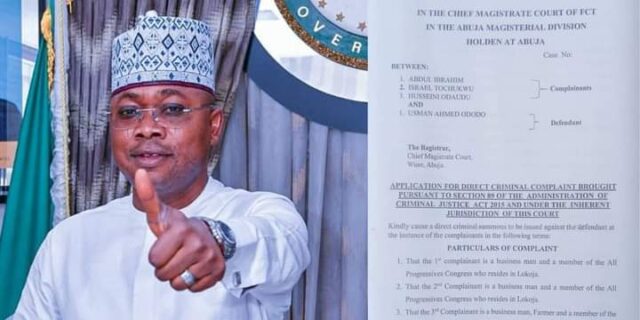 A document dated October 27, 2023, shows that the suit was filed before the Chief Magistrate Court of Federal Capital Territory, Abuja, in accordance with section 89 of the Administration of Criminal Justice Act 2015 which demanded a direct summons to be issued against Ododo.