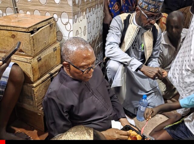 Peter Obi, the 2023 presidential candidate of the Labour Party, shared an evening meal with the Muslim community in Onitsha, Anambra State, during their daily fast-breaking (Iftar) on Saturday.