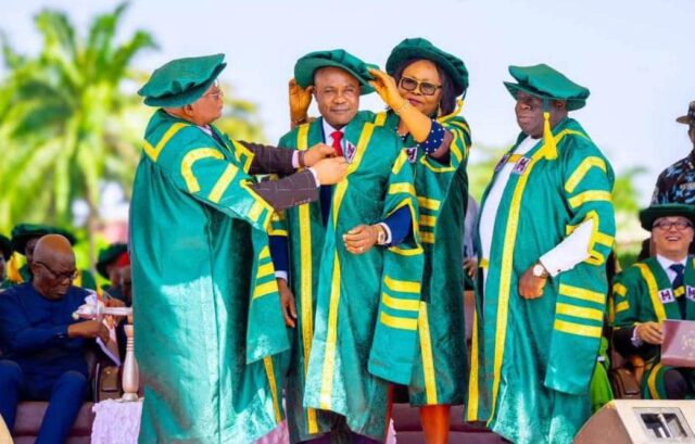 During the ceremony, Governor Mbah was awarded an Honorary Doctorate in Business Administration and Corporate Governance in recognition of his contributions to education and good governance.